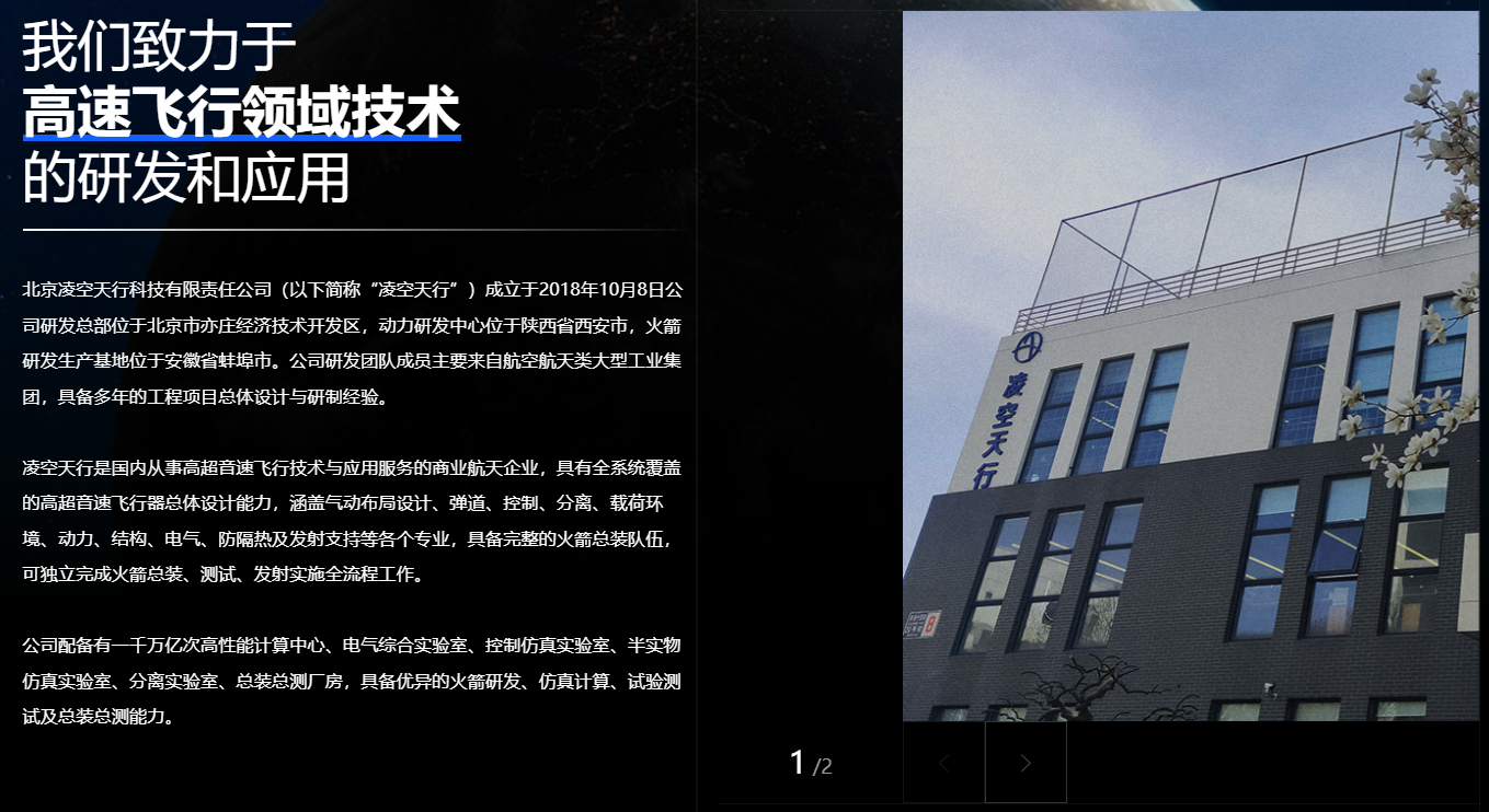北京凌空天行科技有限责任公司介绍显示,该公司研发团队成员主要来自航空航天类大型工业集团,凌空天行号称是“国内从事高超音速飞行技术与应用服务的商业航天企业”。